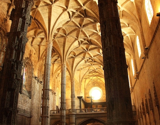 O Mosteiro dos Jerónimos em Lisboa, Portugal, é um exemplo impressionante da arquitetura manuelina, um estilo que se desenvolveu em Portugal durante o reinado de D. Manuel I. A fachada do mosteiro é uma obra-prima de entalhes intrincados, com símbolos do mar e das descobertas feitas pelos exploradores portugueses. O interior da igreja é igualmente impressionante, com seus tetos abobadados e retábulos ornamentados.